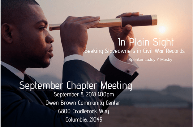 Using her own paternal family history, chapter president LaJoy Mosby was able to show how Civil War enlistment and pension records are a source of information to identify slaveowners as well as the location of the previously enslaved.